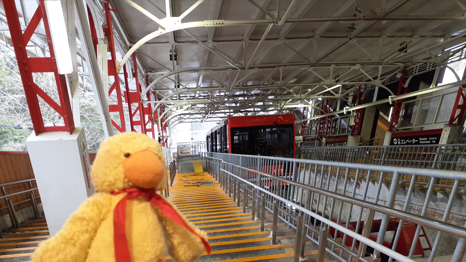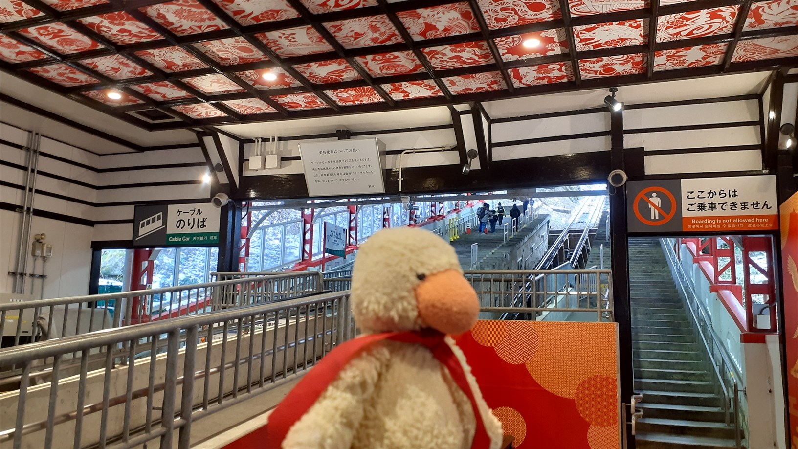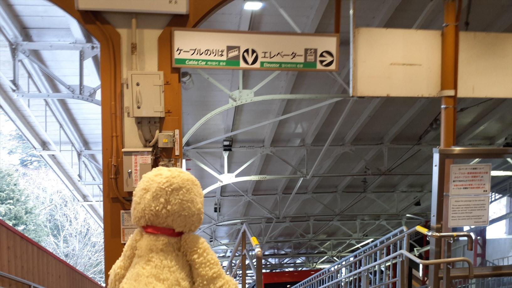2・3分ほど駅の外を見回して、再び改札内に。ケーブルのりばに向かいます。