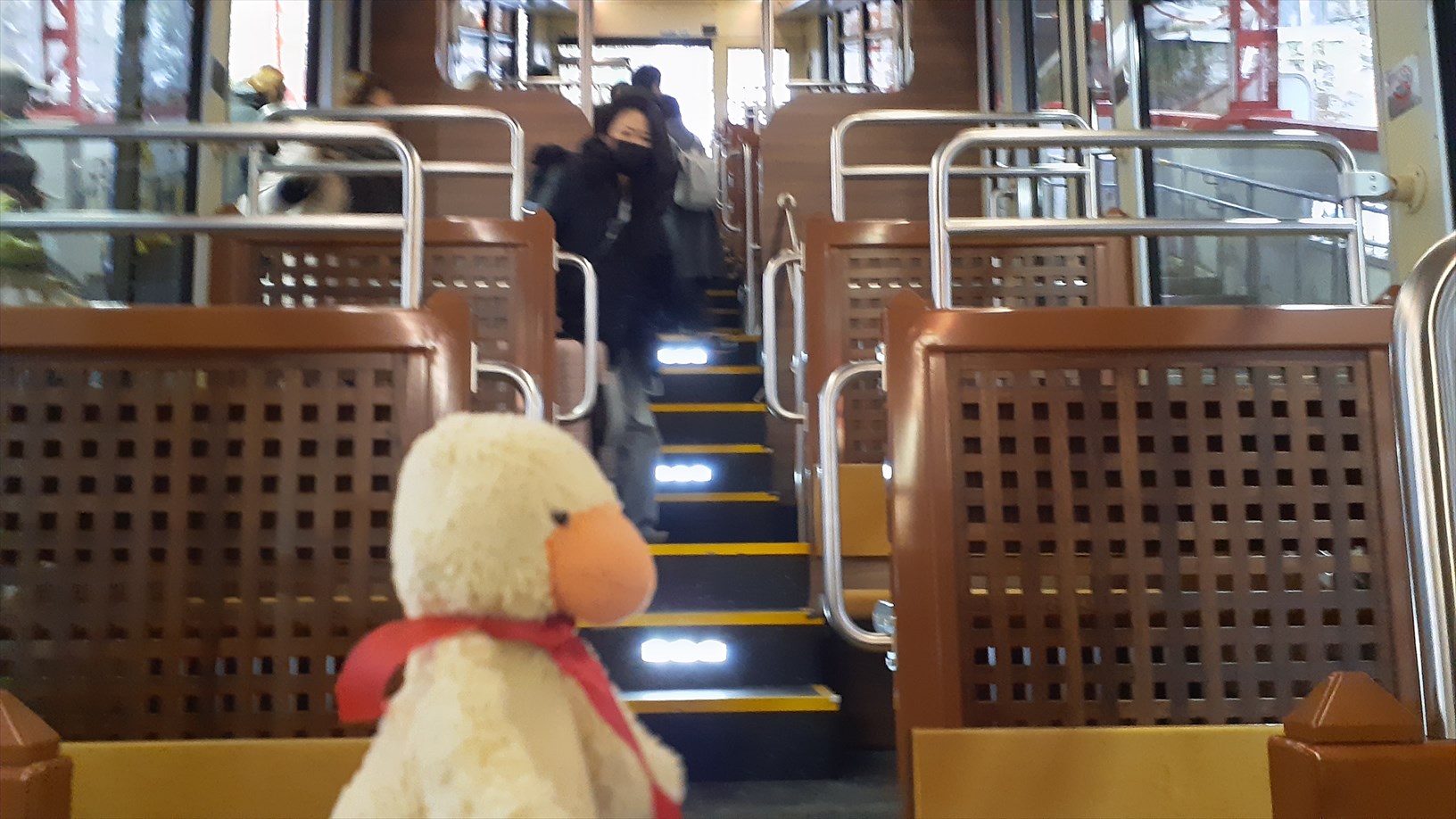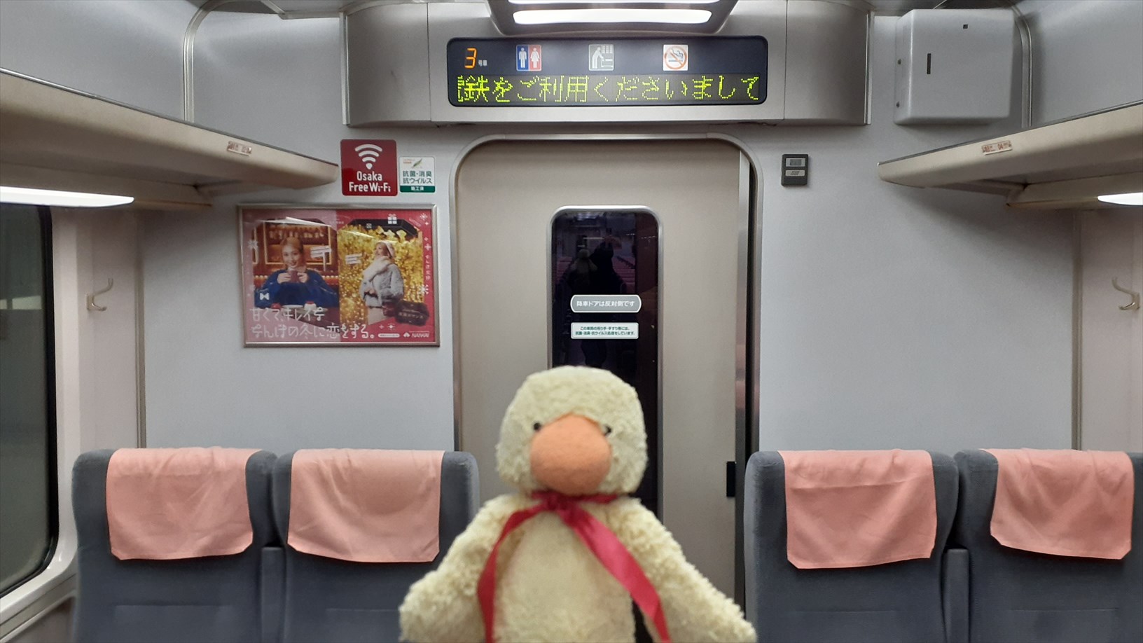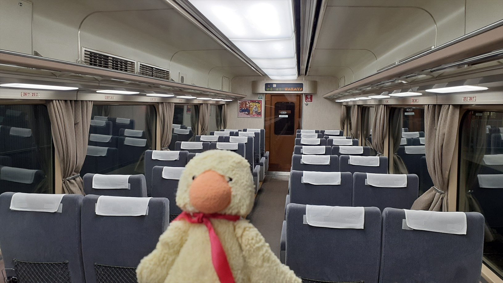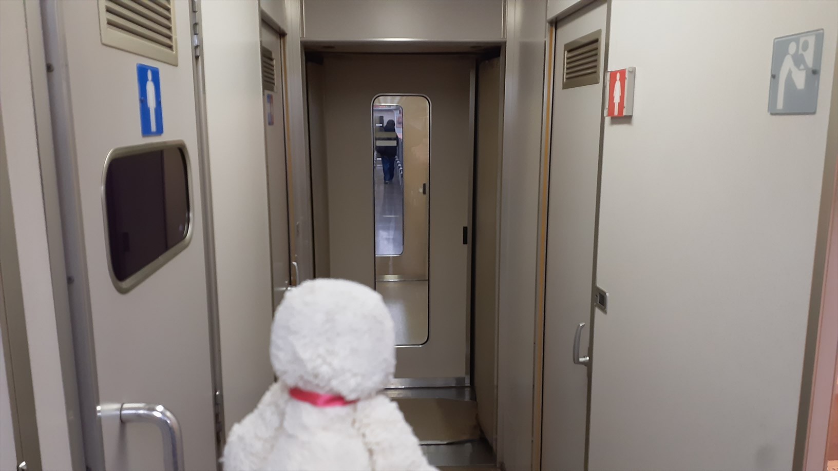 あえて隣の車両から乗って、お手洗いを通り抜け・・・