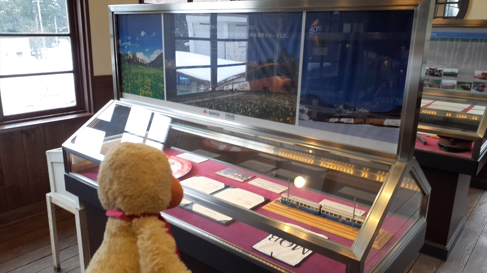 さっきは古い線路を見たので、お次は展示ケースを。
