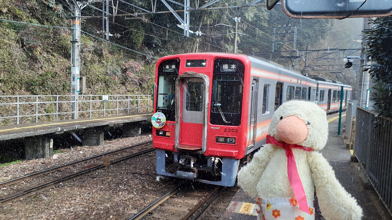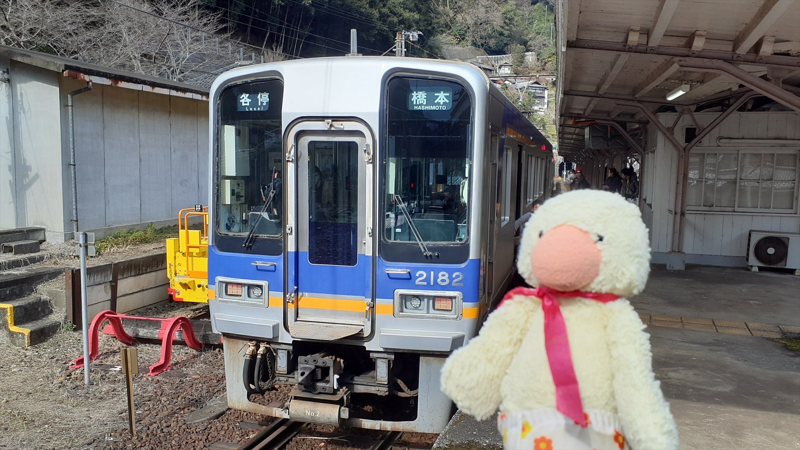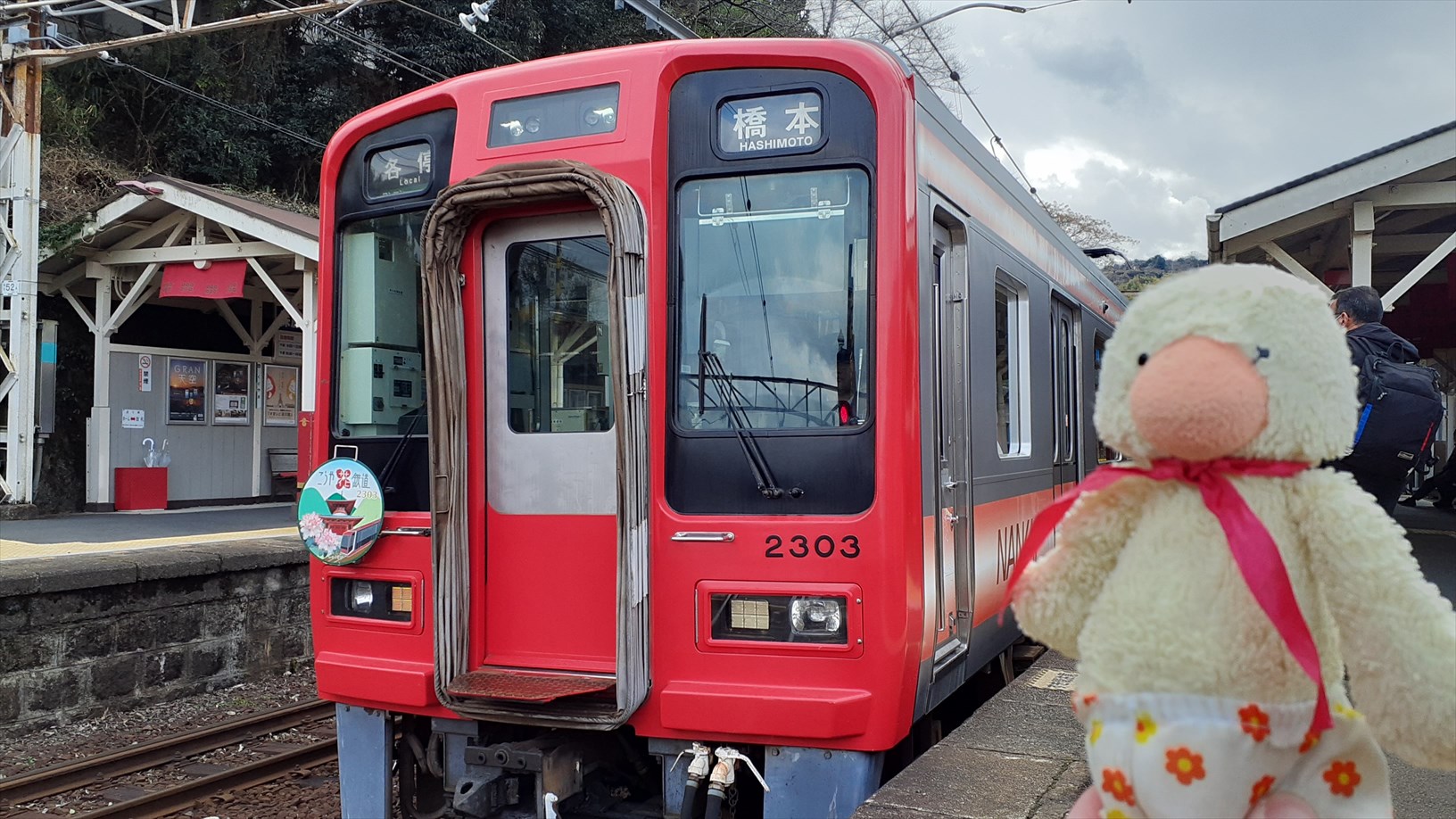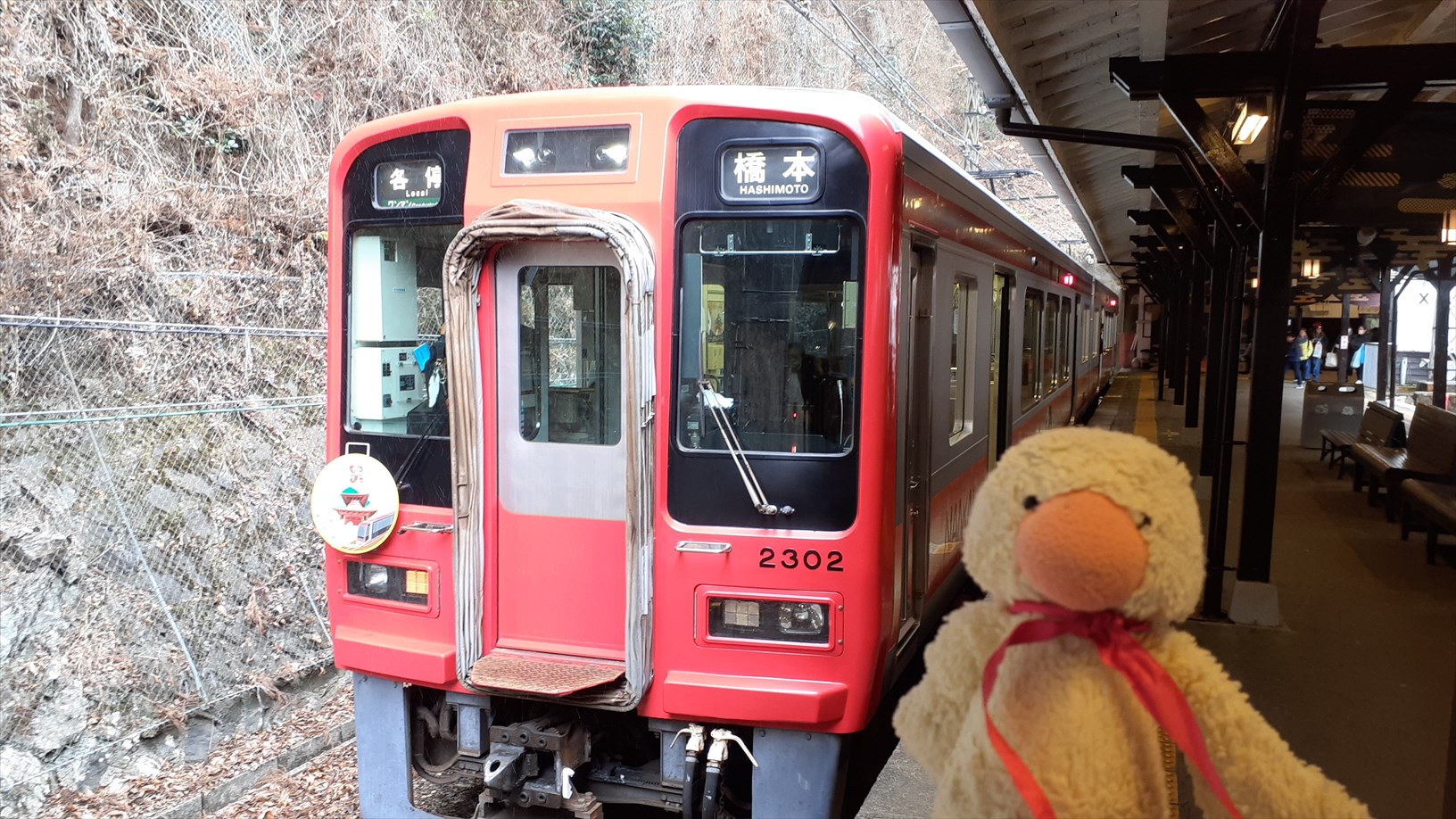 橋本駅から約10分で、駅舎が賑やかな九度山駅を発車。(気になる)